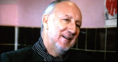 So, I arrive and meet Matt O ' Casey for the first time. And yes, he sounds exactly like he did on the phone, a quiet-spoken mannerly English geezer. He introduces me to the crew and his assistants, all of whose names I typically immediately forget. The door opens and in walks my old friend Barney otherwise known as Richard Barnes. Haven't seen him in a few years but we get on so well it always seems like we're simply carrying on our surreal conversation from where we last left off. So everything's ready and I hear Matt announce to his crew..."We'll pick him up as he walks towards the café." It transpires that Pete Townshend's imminent arrival is more important than that of either mine or Barney's. I announce this in mock annoyance to Matt and his crew and it breaks a lot of ice. Townshend can crush your bloody bones when he decides to inflict one of his Baba hugs on you. My sides ached but my mind sang. "How long has it been? Oh, right, 2007, the Marquee Festival in Cork." So we three grumpy old men from another century sit down and wax lyrical. Matt wanted us at a tight table. Townshend's legs bumped into mine under it and our elbows clashed on top of it but it was just marvellous. Naturally and as we would have both expected we had to struggle to get in a word against Barney's elongated descriptions of the 'times'. It's weird doing these kind of filmed interviews with a camera tracking every bit of conversation cos you know that only a tiny part of what you've talked about for over half an hour is going to end up on screen, so you have to make every word count.